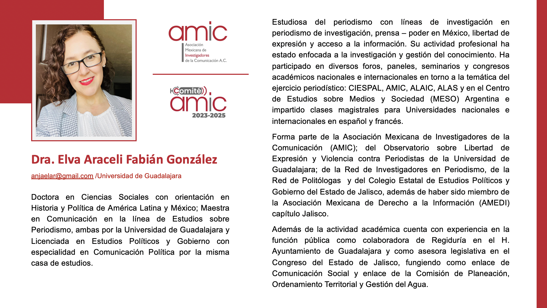 Presidenta de AMIC, Dra. Lizy Navarro Zamora:
