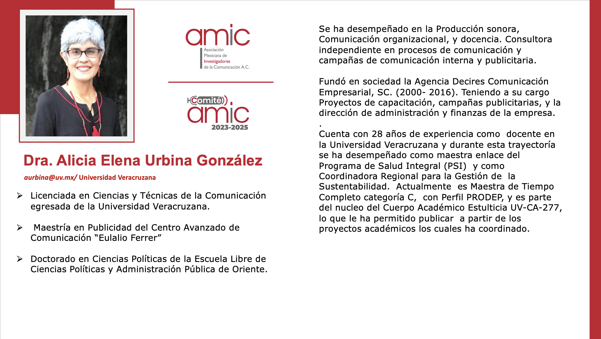 Miembros AMIC · U · A | B | C | D | E | F | G | H | I | J | L | M | N | O | P | R | S | T | U | V | Y | Z Si no ubicas tu ficha o necesitas actualizar los datos, agradeceremos escribas a laPresidenta de AMIC, Dra. Lizy Navarro Zamora: lizy@uaslp.mx Urcid Puga Rodrigo VER FICHA Urbina González Alicia Elena VER FICHA